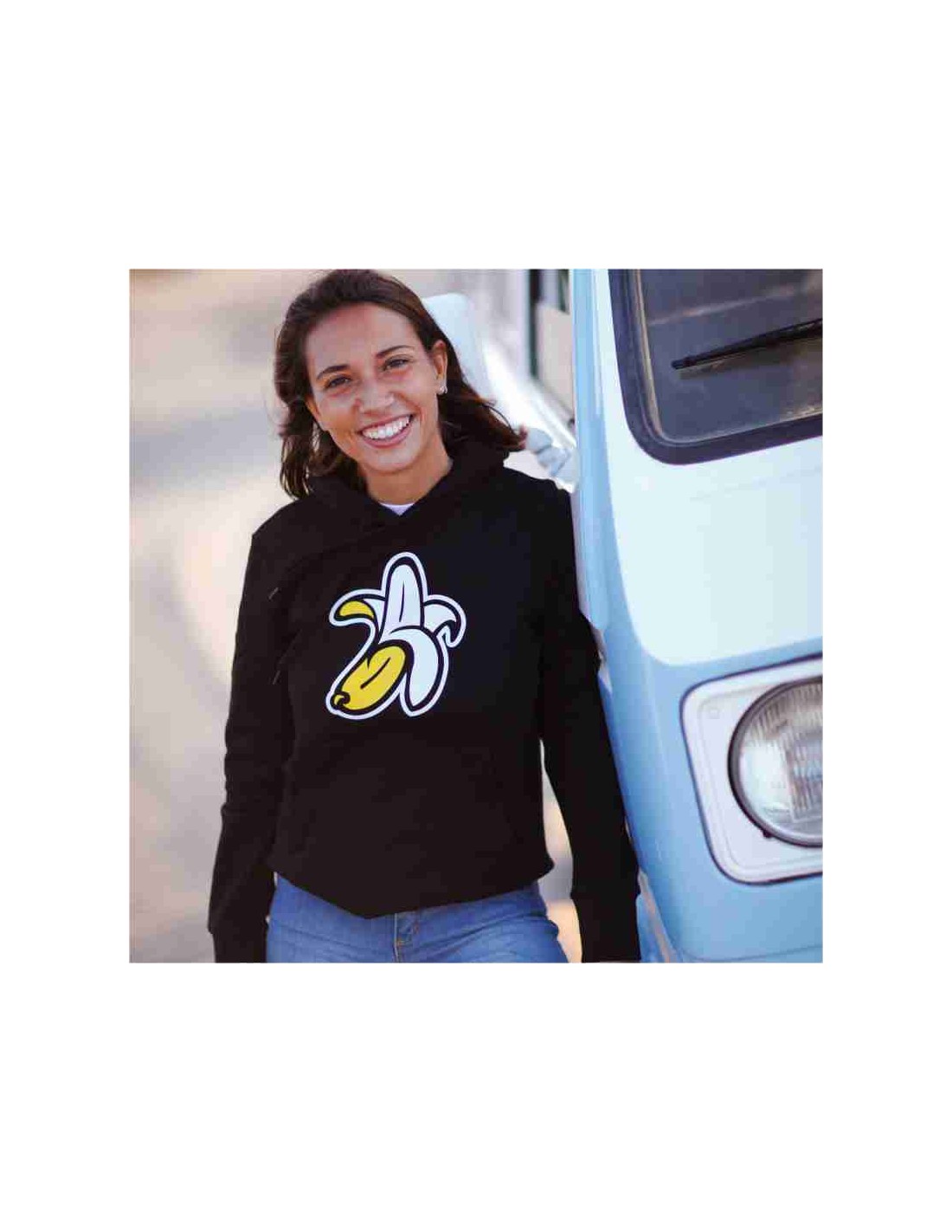 Sudadera Orgánica Mujer con Capucha Logo Plátano Negro
